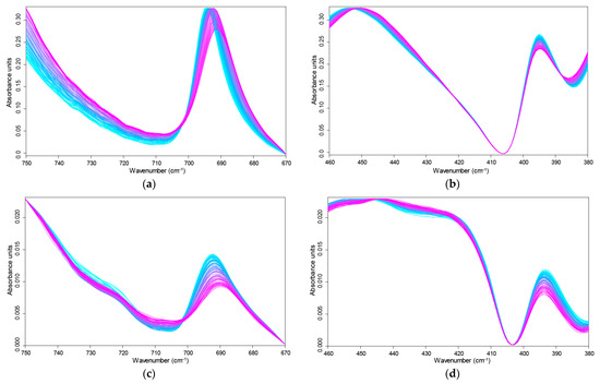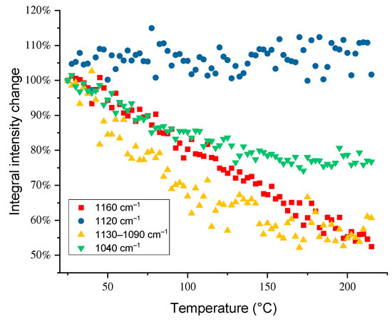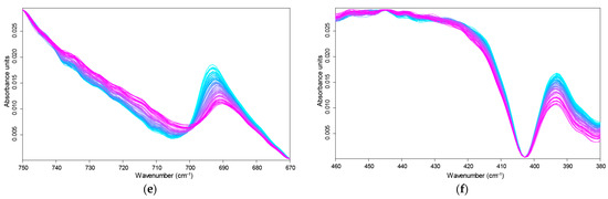 | B 1153–1163 Q | s ↑ | SiO2 lattice [70] | C–O of carbohydrates; H-bonded stretching of C–OH; CH deformation [71,72,73] |
