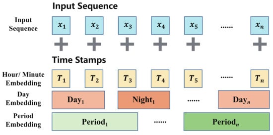 - In the classical Transformer model, the Positional Embedding mechanism was introduced to capture the temporal order of the data. However, when dealing with the prediction of strawberry growth, where the biological characteristics of strawberries varied under diurnal conditions, the Global Time Stamp mechanism in the Informer model was better suited for handling such time-dependent temporal series. The Global Time Stamp mechanism involved attaching a timestamp to each input data point during training. This mechanism allowed the model to incorporate comprehensive time information into the sequence data, thereby enhancing its modeling capacity and improving prediction accuracy for time-series tasks. By utilizing the Global Time Stamp mechanism, the model could better understand and capture the time-dependent patterns and dynamics of strawberry growth, leading to improved performance in the prediction task. The Global Time Stamp mechanism is illustrated in Figure 5.