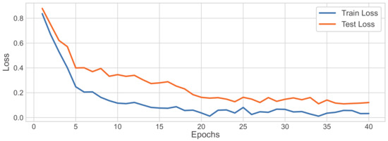 After 40 epochs of training, the train loss and test loss both stabilized, and there were no drastic changes observed, which could be regarded as the convergence of the results and the end of training.