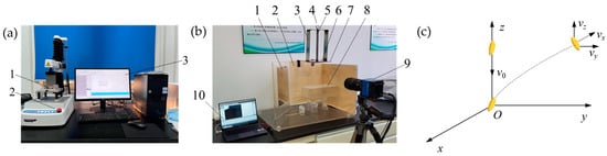 Assuming that the rice grain impacts and falls from the adhesive plate with a certain initial velocity, it collides with a horizontal material surface. A horizontal spatial cartesian coordinate o-xyz was established, as shown in Figure 3c. Before the collision, the rice grain undergoes uniform accelerated motion in the vertical direction.