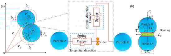 In the bonding bond setting process of Hertz–Mindlin with the bonding model, the required parameters mainly include normal stiffness coefficient, tangential stiffness coefficient, critical normal stress, critical tangential stress, and particle bonding radius.