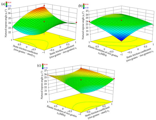 The physical parameters of the tested rice grains and the contact parameters between rice grains and steel are encoded as −1 and +1 levels, representing the minimum and maximum values, respectively, as shown in Table 1.