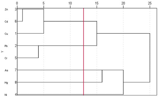 Cluster analysis dendrogram of eight HMs in JRB soil.