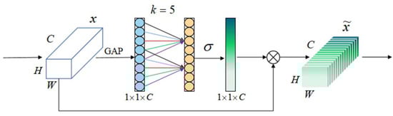 where is the channel weight; is the sigmoid function; is the 1D convolution; y is the result after global average pooling; and k is the convolution kernel size. Finally, the features with channel attention are obtained by dot product operation of the original input features and channel weights.