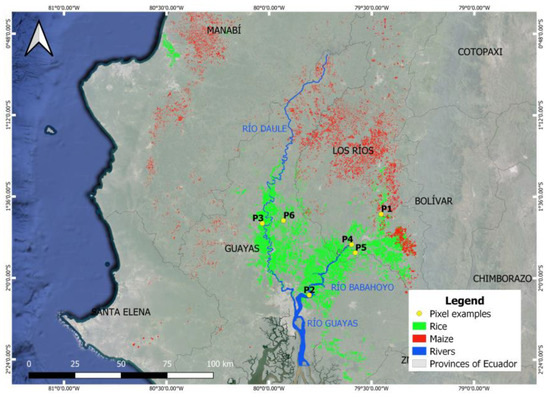 The authors would like to thank the Ministry of Agriculture and Livestock of Ecuador (MAG) for providing spatial information about the sowing areas of rice and maize used in this research. We also thank the reviewers for their helpful comments that improved the manuscript.