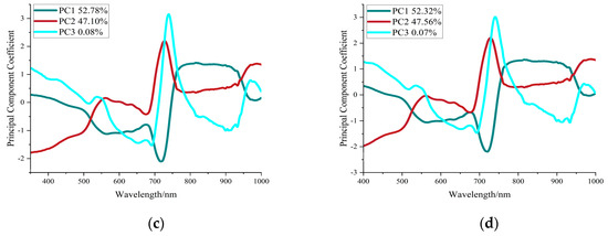 PCA analysis results. (a) Original imaging spectra data; (b) Image spectral data after linear interpolation; (c) Original non-imaging spectra data; (d) Non-imaging after linear interpolation.