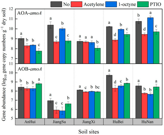 - He, J.; Shen, J.; Zhang, L.; Zhu, Y.; Zheng, Y.; Xu, M.; Di, H. Quantitative analyses of the abundance and composition of ammonia-oxidizing bacteria and ammonia-oxidizing archaea of a Chinese upland red soil under long-term fertilization practices. Environ. Microbiol. 2007, 9, 2364–2374. [Google Scholar] [CrossRef] [PubMed]