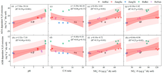 - Duan, P.; Wu, Z.; Zhang, Q.; Fan, C.; Xiong, Z. Thermodynamic responses of ammonia-oxidizing archaea and bacteria explain N2O production from greenhouse vegetable soils. Soil Biol. Biochem. 2018, 120, 37–47. [Google Scholar] [CrossRef]