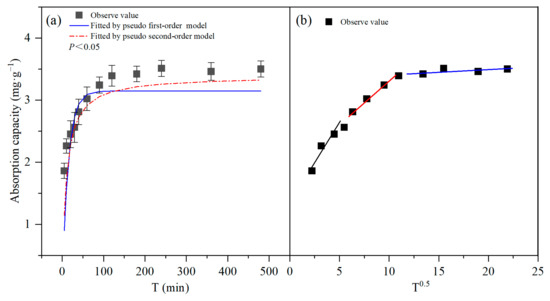 3.2.2. Absorption Kinetic of NO3−-N by Biochar