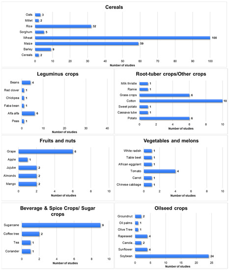 Number of studies per crop category and crop.