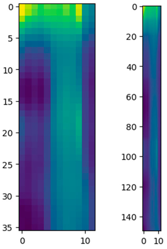 In this paper, we introduce an additional representation of the source data. We converted the multi-spectral time series (considering the available set of bands of Sentinel-2 platforms) into a set of images wherein each image represents a given pixel over temporal and spectral dimensions. The process used to generate the images can be summarized as follows. We create an image of size m × n where m is the overall number of days or weeks starting from the reference image and n is the number of bands, which, in our case, is 12. Figure 5 shows an example of images generated from our dataset, considering both week and day resolutions.