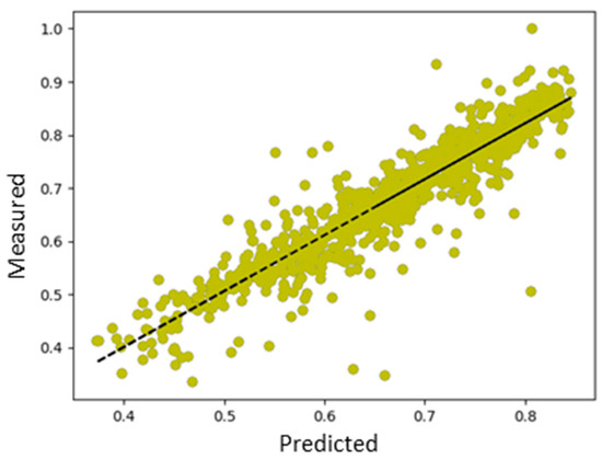 Figure 8 shows the scatter plot in the best case for T1 using linear interpolation and the VGG16 model.