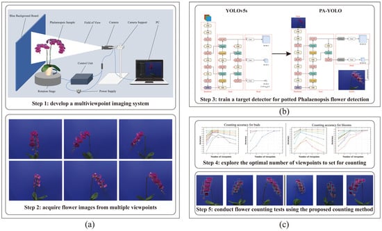 Therefore, in response to low detection precision, as well as occlusion and overlap issues in regard to counting, a novel counting method based on an effective target detector and multiple viewpoints was proposed. In summary, the objective of this study was to achieve accurate flower detection and counting of potted Phalaenopsis plants with occlusions and overlaps.