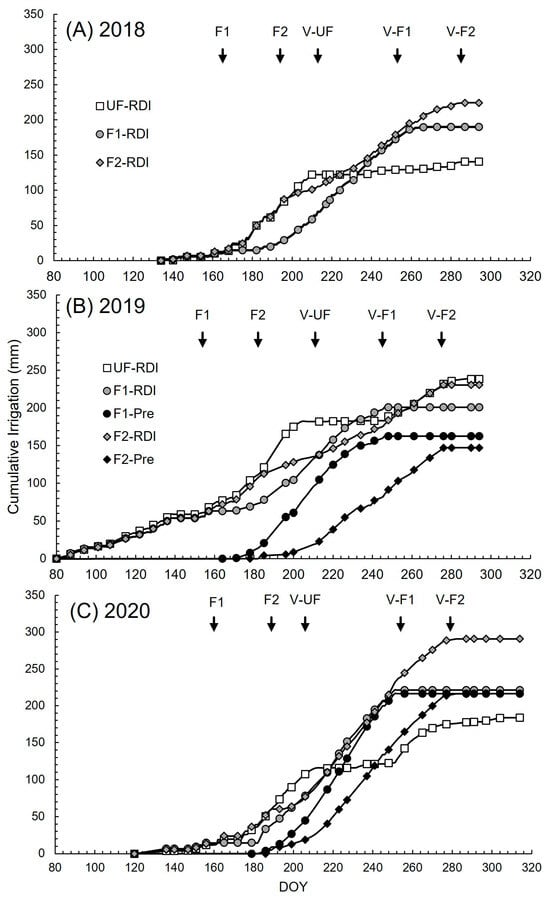 APA StyleOliver-Manera, J., García-Tejera, O., Mata, M., & Girona, J. (2024). Long-Term Study of the Crop Forcing Technique on cv. Tempranillo (Vitis vinifera L.) Vines and Suggested Irrigation Strategies to Improve Water Use Efficiency of Forced Vines. Agronomy, 14(1), 130. https://doi.org/10.3390/agronomy14010130