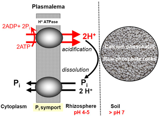 This form of P is not taken up directly by the plant root. The soil zone around the root must be acidified or enriched with Ca complexing agents, e.g., organic acids [112]. Legumes and cruciferous plants have the potential to release Pi from this P mineral. This regularity is a signal to the farmer that growing species from these plant families in rotation with cereals improves their P status, finally resulting in a higher yield [113].