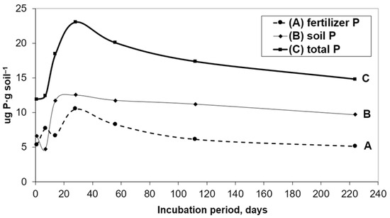 The relationships between soil pH and the amount of available P are quite complex [111]. The optimal pH range, defining the highest content of available P, is narrow. Plants take up P from the soil solution in the form of H2PO4−1. This form is present in the soil in a very wide range (pH 4–8). However, it reaches its maximum in pH ranging from 6.6 to 7.2 (neutral pH range). When the soil pH drops below 5.5, Pi ≈ Al complexes are formed, which precipitate in acid soil to form P–Al, and P–Fe compounds. Above the upper pH range, stable P–Ca compounds are formed [53]. However, already in the neutral pH range, brushite appears, a P mineral form that is inaccessible to plant roots: