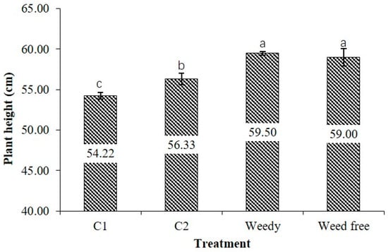 | Weed-free (n = 32) | 630.40 ± 11.16 | 25.85 ± 1.04 | 28.62 ± 0.81 | 6.79 ± 0.17 | -- | -- | ||