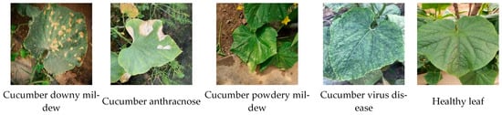 The cucumber is a kind of low-calorie vegetable containing a variety of vitamins and minerals and is widely grown all over the world. According to statistics from the Food and Agriculture Organization, the global cucumber planting area in 2020 was approximately 2.25 million hectares, with a yield of about 90.35 million tons, making it the third largest vegetable crop in the world [1]. The cucumber has a longer growth cycle and may be affected by a number of diseases. As reported, there are 25 common cucumber diseases, among which 18 are leaf diseases (>70%).