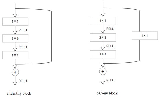 Two types of residual modules: (a) Identity block and (b) Conv block.