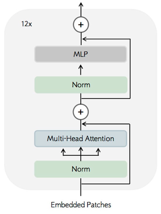- Dosovitskiy, A.; Beyer, L.; Kolesnikov, A.; Weissenborn, D.; Zhai, X.; Unterthiner, T.; Dehghani, M.; Minderer, M.; Heigold, G.; Gelly, S.; et al. An Image is Worth 16 × 16 Words: Transformers for Image Recognition at Scale. arXiv 2020, arXiv:2010.11929. [Google Scholar]