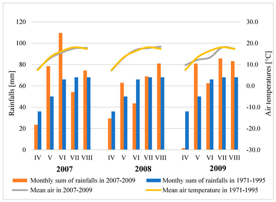 The weather conditions during the growing season in 2007–2009 were characterized by changeable air temperatures and rainfalls (Figure 5, Table 6).