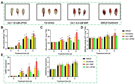- Ma, J.; Saleem, M.H.; Alsafran, M.; Jabri, H.A.; Mehwish; Rizwan, M.; Nawaz, M.; Ali, S.; Usman, K. Response of cauliflower (Brassica oleracea L.) to nitric oxide application under cadmium stress. Ecotoxicol. Environ. Saf. 2022, 243, 113969. [Google Scholar] [CrossRef]