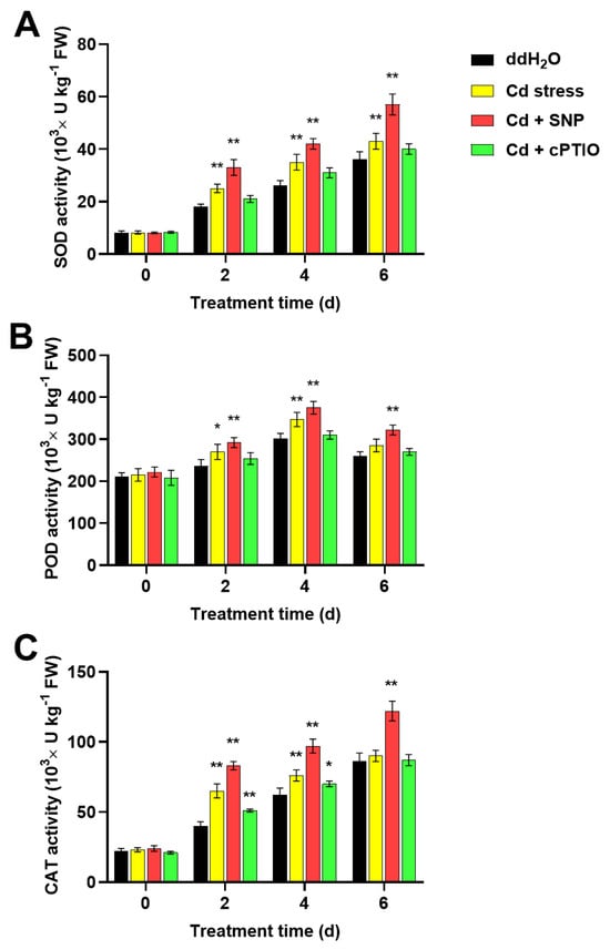 | Cd + 0.2 mM SNP | Cd + 0.4 mM SNP | Cd + 0.6 mM SNP | |||