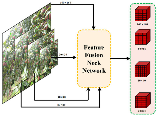 Occlusion and large distances of litchi in images often result in large differences in litchi scales. Large targets at the front of images occupy most of the area, while individual small targets, especially the head area, account for less than 1% of the image size, and feature information is easily lost [43]. In [40], an additional transformer module detection head was added to a detection model, achieving good results for high-speed and low-altitude flights on datasets with densely packed objects with drastic scale changes. This provided inspiration for the improvements proposed in this article.