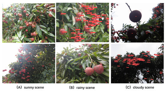 In actual production, orchard managers usually use random sampling and manual counting to estimate orchard yields [5]. However, scattered litchi clusters, obstructions due to leaves and branches, and the complex lighting conditions of the natural environment lead to low-accuracy litchi identification [6,7]. Consequently, achieving real-time and accurate litchi identification in natural dense scenes is one of the core issues in improving the accuracy of litchi yield estimations.
