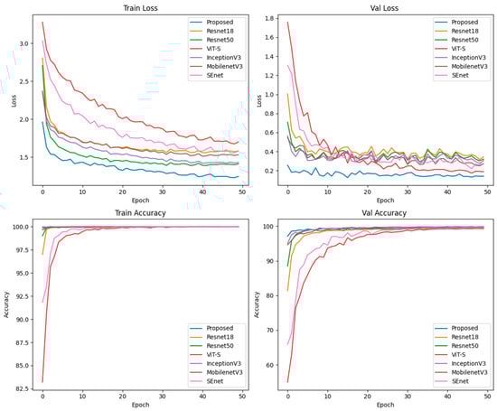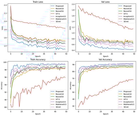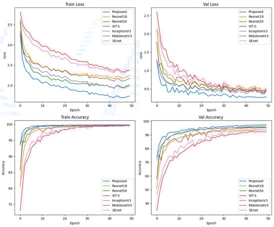 All our experiments are performed on the AutoDL private cloud platform. The models were experimented on a single NVIDIA GeForce RTX 4090 GPU (From Santa Clara, CA, USA) with 24 GB of RAM. In the experiments, the models were implemented using the Python programming language, the PyTorch (2.2.1) deep learning framework, and the Timm library for training and evaluation. The software and hardware configurations are shown in Table 2.