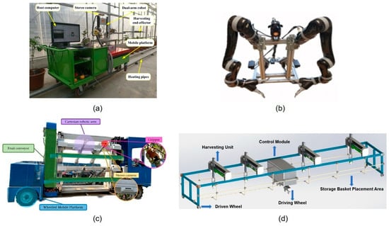 - Ling, X.; Zhao, Y.; Gong, L.; Liu, C.; Wang, T. Dual-arm cooperation and implementing for robotic harvesting tomato using binocular vision. Robot. Auton. Syst. 2019, 114, 134–143. [Google Scholar] [CrossRef]