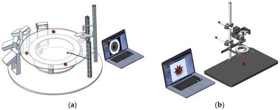 Experimental collection equipment: (a) glass turntable collection device; (b) high-resolution camera.
