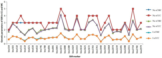T test for genetic parameter of SSR populations between CC and MC.