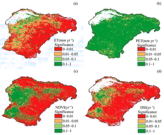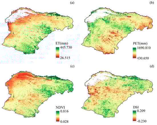 - Wang, H.; Li, Z.; Cao, L.; Feng, R.; Pan, Y. Response of NDVI of natural vegetation to climate changes and drought in China. Land 2021, 10, 966. [Google Scholar] [CrossRef]
