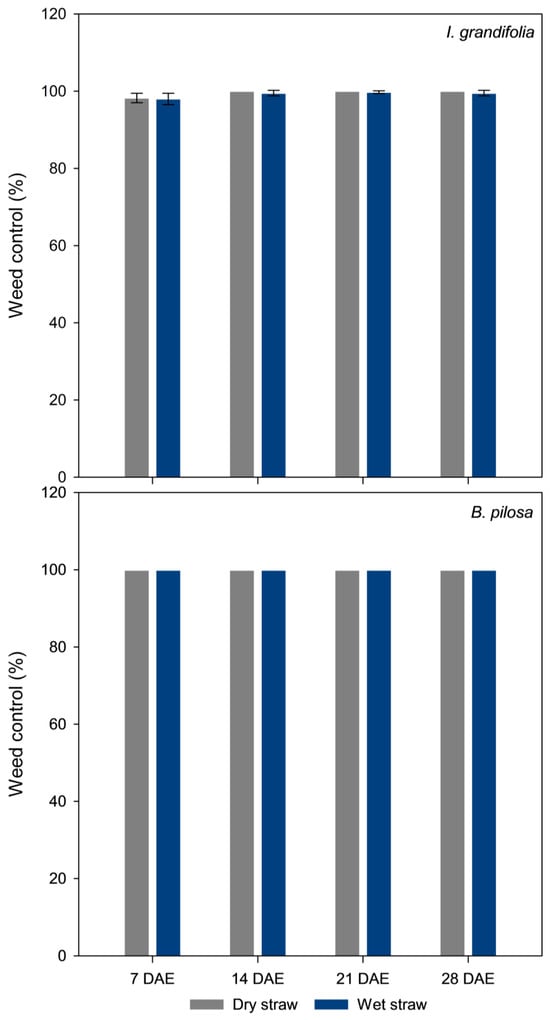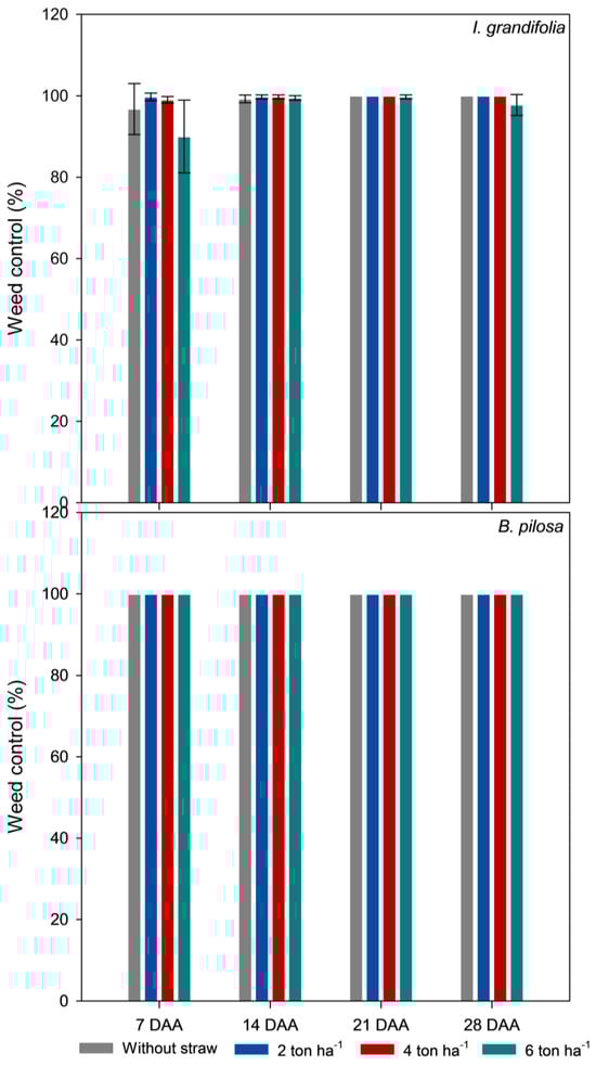 | 720 g i.a. ha−1 | 4 t ha−1 | 20 mm—3 DAA | Dry straw |
