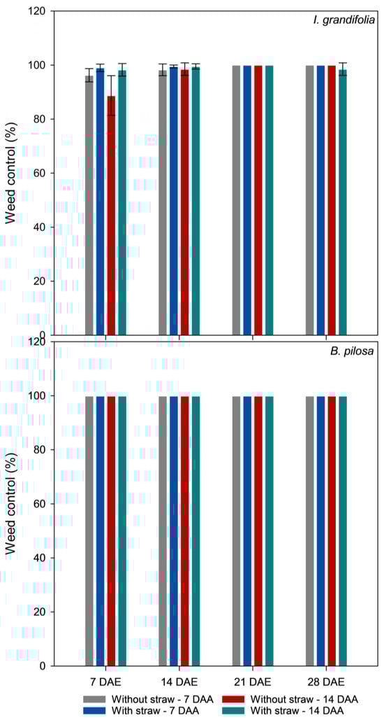 | 720 g i.a. ha−1 | 4 t ha−1 | 20 mm—1 DAA | - |