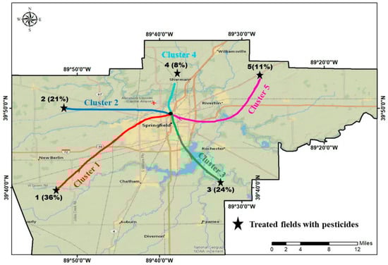 - El Afandi, G.; Ismael, H.; Fall, S. A Hybrid Modeling Approach for Estimating the Exposure to Organophosphate Pesticide Drift in Sangamon County, Illinois. Sustainability 2024, 16, 2908. [Google Scholar] [CrossRef]
