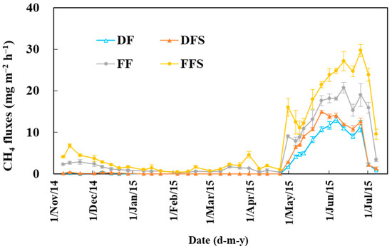 - Tang, S.R.; Cheng, W.G.; Hu, R.G.; Guigue, J.; Kimani, S.M.; Tawaraya, K.; Xu, X.K. Simulating the effects of soil temperature and moisture in the off-rice season on rice straw decomposition and subsequent CH4 production during the growth season in a paddy soil. Biol. Fert. Soils 2016, 52, 739–748. [Google Scholar] [CrossRef]