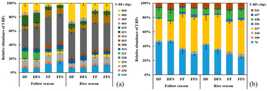 - Lukow, T.; Dunfield, P.F.; Liesack, W. Use of the T-RFLP technique to assess spatial and temporal changes in the bacterial community structure within an agricultural soil planted with transgenic and non-transgenic potato plants. FEMS Microbio. Ecol. 2000, 32, 241–247. [Google Scholar] [CrossRef] [PubMed]
