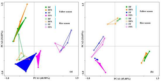 - Arunrat, N.; Sansupa, C.; Kongsurakan, P.; Sereenonchai, S.; Hatano, R. Soil Microbial Diversity and Community Composition in Rice–Fish Co-Culture and Rice Monoculture Farming System. Biology 2022, 11, 1242. [Google Scholar] [CrossRef]