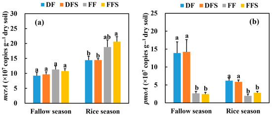 Wang, W.; Chen, Q.; Huang, H.; Xie, Y. Effects of Fallow Season Water and Straw Management on Methane Emissions and Associated Microorganisms. Agronomy 2024, 14, 2302. https://doi.org/10.3390/agronomy14102302