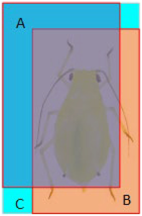 In Equations (4) and (5), is the predicted box, is the ground-truth box, and is the bounding rectangle that encloses both and , as illustrated in Figure 2.