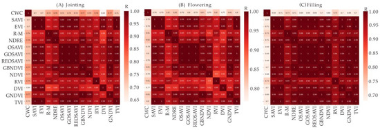 3.1. Correlation Analysis between Vegetation Indices and CWC