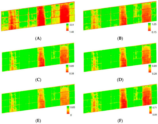| Green optimized soil-adjusted vegetation index (GOSAVI) | (NIR − R)/(NIR + G + 0.16) | [30] |