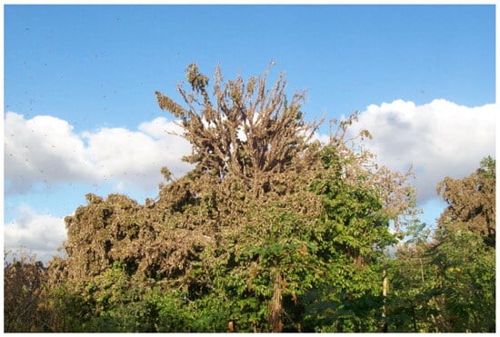 - Samways, M.J. Can locust control be compatible with conserving biodiversity? In Grasshoppers and Grassland Health. Managing Grasshopper Outbreaks without Risking Environmental Disaster; Lockwood, J.A., Latchininsky, A.V., Sergeev, M.G., Eds.; Kluwer Academic Publishers: Dordrecht, The Netherlands, 2000; pp. 173–180. Available online: http://link.springer.com/chapter/10.1007/978-94-011-4337-0_12 (accessed on 10 October 2024).