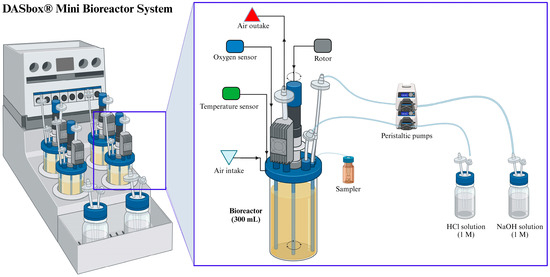 Schematic of a DASbox® automated mini-bioreactor system for biosurfactant production.
