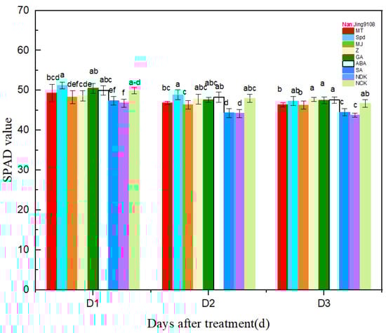 3.2. Effects of Different Exogenous Hormones on SPAD Values of Rice Rapeseed Leaves
