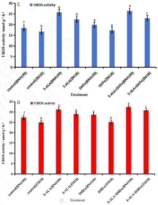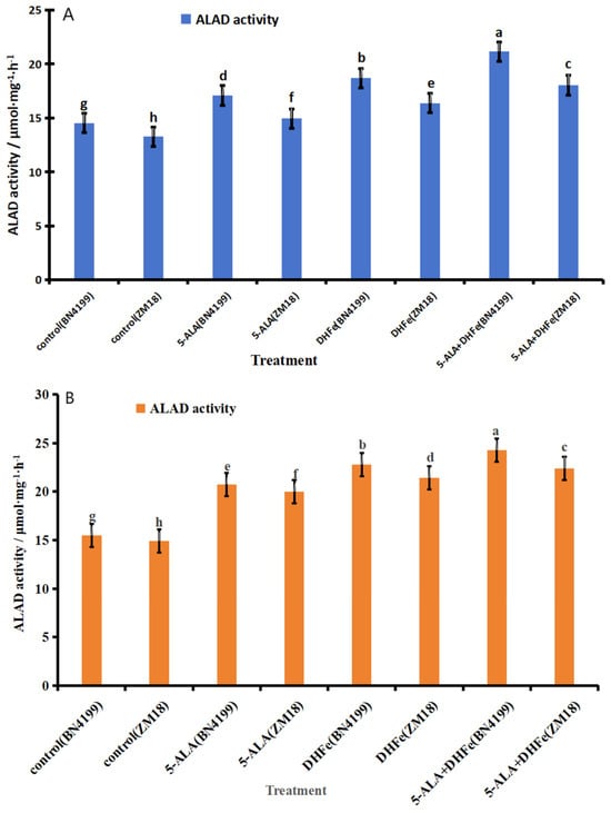 APA StyleHu, G., Zhou, X., Chao, M., & Hu, H. (2024). Roles of Exogenous 5-Aminolevulinic Acid and Dihydroporphyrin Iron in Chlorophyll Precursor Synthesis and Chlorophyll-Related Enzyme Activities in Wheat Under Different Light Intensities. Agronomy, 14(11), 2464. https://doi.org/10.3390/agronomy14112464