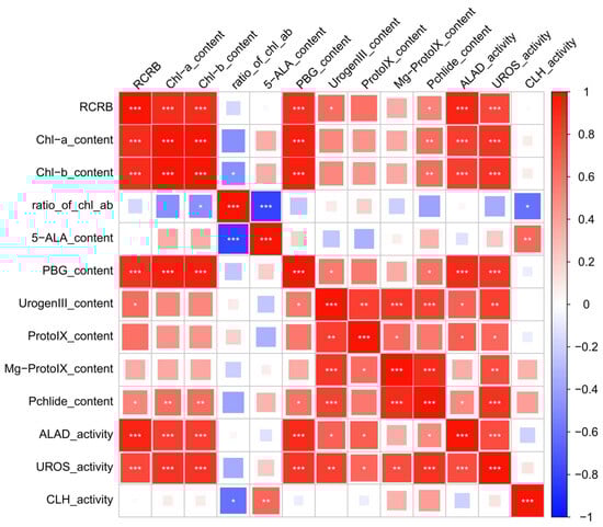 3.6. Correlation Between Precursor Substances and Crucial Enzymes Involved in Chlorophyll Synthesis