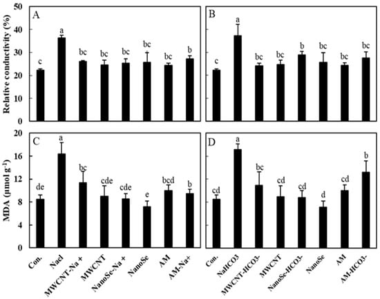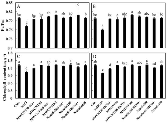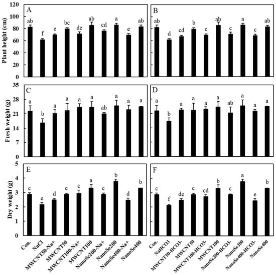 | 10 | 5 mg L−1 Nano-Se + 163 mM NaCl | 100 mg L−1 MWCNTs + 63 mM NaHCO3 |